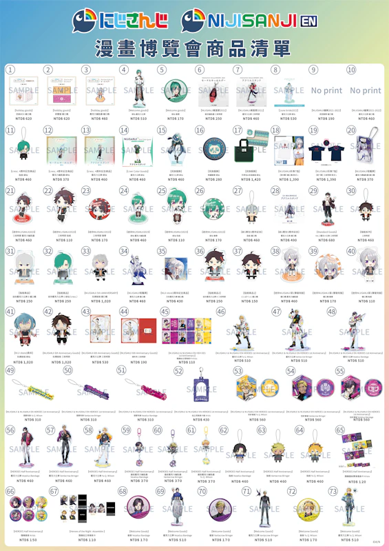 イベント期間中、にじさんじ、NIJISANJI ENブースにてグッズを購入すると、お買い上げ税込600NTD(ニュー台湾ドル)ごとに「チケット風カード(全6種)」をランダムで1点プレゼント!