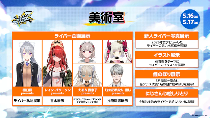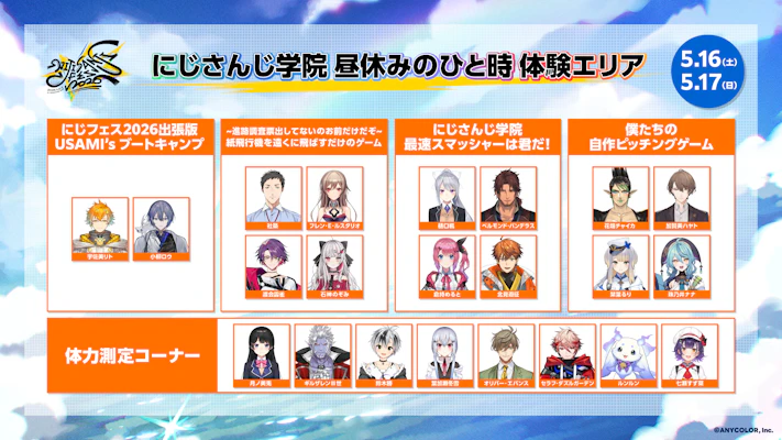 ANYCOLOR株式会社(本社:東京都港区 代表取締役:田角陸、以下「当社」)が運営するVTuber / バーチャルライバーグループ「にじさんじ」は、「にじさんじフェス2026」の最新情報をお伝えいたします。