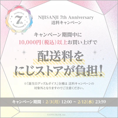 日頃のご愛顧に感謝するとともに、にじさんじ7周年を記念して2025年2月3日(月)12時から「にじさんじオフィシャルストア」にて、新規グッズ販売や送料負担キャンペーンを開催いたします。