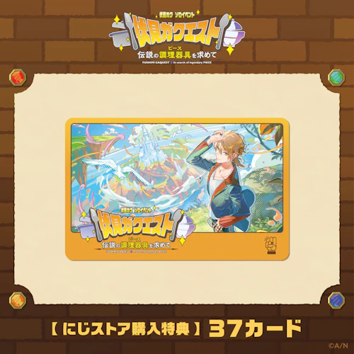 にじストアで「伏見ガクエスト 〜伝説の調理器具(ピース)を求めて〜」グッズを5,000円(税込)ご購入いただいたお客様に、 「37カード(全1種)」を1枚プレゼントいたします。