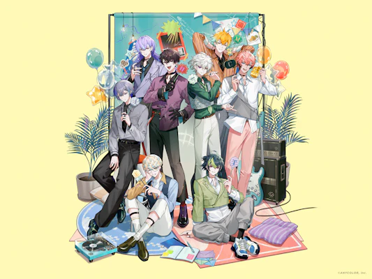 ANYCOLOR株式会社が運営するVTuber/バーチャルライバーグループ「にじさんじ」所属ライバー、佐伯イッテツ、赤城ウェン、宇佐美リト、緋八マナ、星導ショウ、叢雲カゲツ、小柳ロウ、伊波ライの8名からなるユニット「MECHATU-A(めちゃつえー)」