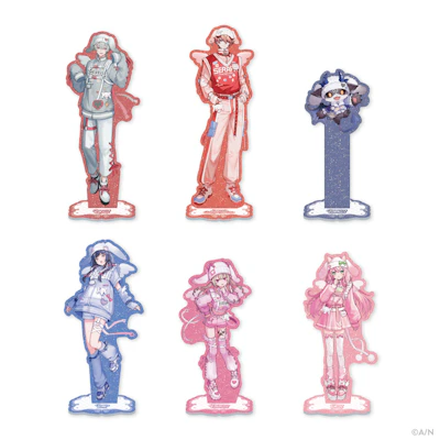 グッズラインナップはラメアクリルスタンド、ランダムチェキ風カード、ぬいぐるみマスコット、クリアステッカーセット、アクリルキーホルダー、ネームバッジの6種類。