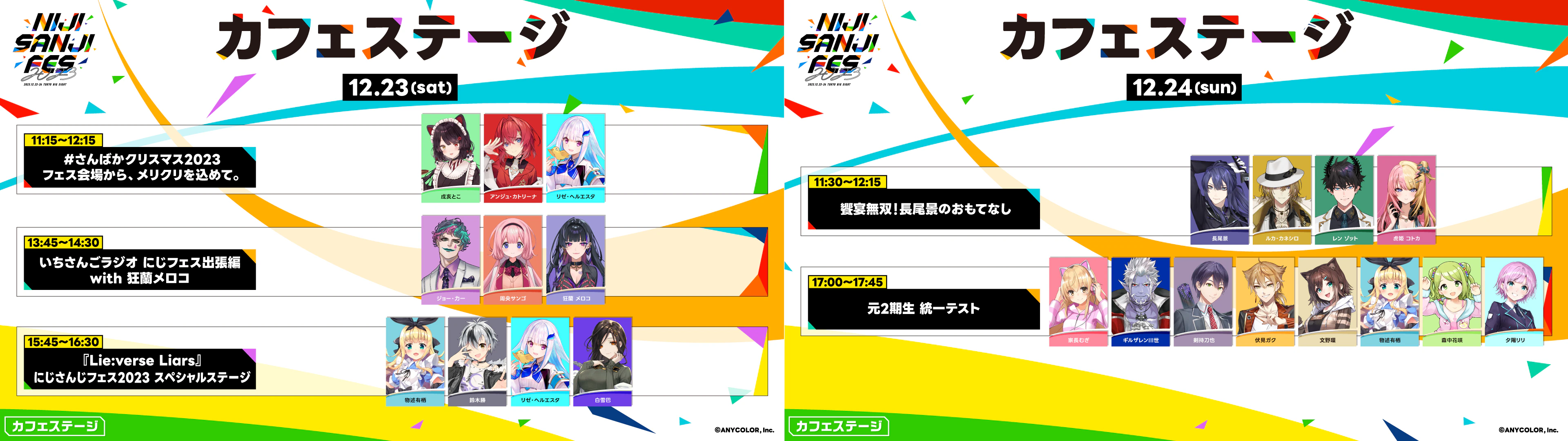 ANYCOLOR株式会社(本社:東京都港区 代表取締役:田角陸、以下「当社」)が運営するVTuber / バーチャルライバーグループ「にじさんじ」 は、2023年12月23日(土)・24日(日)に開催する「にじさんじフェス2023」の最新情報をお伝えいたします。