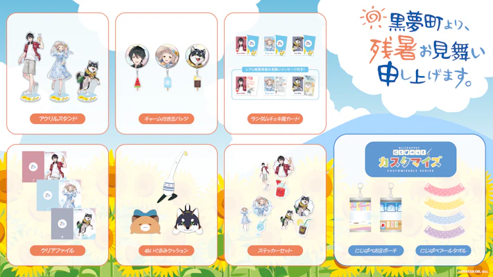 「黒夢町より、残暑お見舞い申し上げます」グッズを2025年8月22日(金)18時からにじストアにて販売開始!
