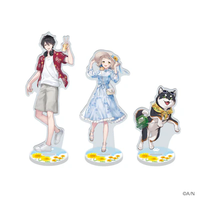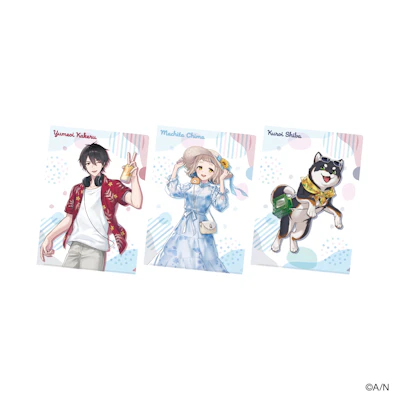参加ライバーは夢追翔、町田ちま、黒井しばの3名。グッズラインナップは、ランダムチェキ風カード、アクリルスタンド、チャーム付き缶バッジ、クリアファイル、ステッカーセット、ぬいぐるみクッションの6種類。