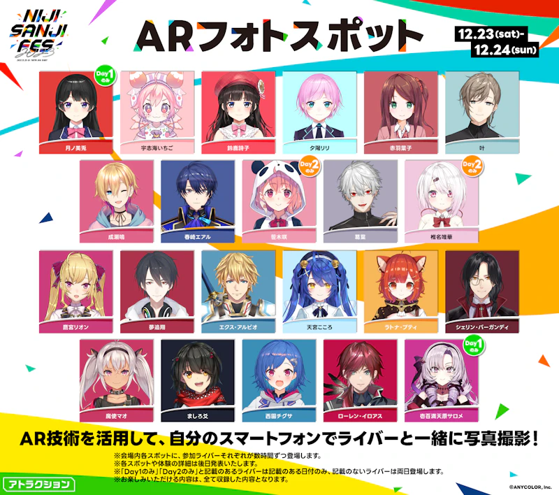 ANYCOLOR株式会社(本社:東京都港区 代表取締役:田角陸、以下「当社」)が運営するVTuber / バーチャルライバーグループ「にじさんじ」 は、2023年12月23日(土)・24日(日)に開催する「にじさんじフェス2023」の最新情報をお伝えいたします。