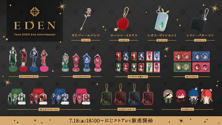 ANYCOLOR株式会社(本社:東京都港区 代表取締役:田角陸、以下「当社」)が運営するVTuber / バーチャルライバーグループ「にじさんじ」は、「エデン組 4th Anniversary」グッズを2025年7月18日(金)18時から販売開始いたします。