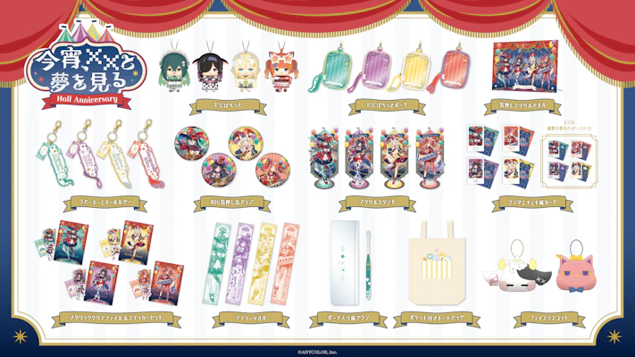 ANYCOLOR株式会社(本社:東京都港区 代表取締役:田角陸、以下「当社」)が運営するVTuber / バーチャルライバーグループ「にじさんじ」は、「今宵、××と夢を見る。 Half Anniversary」グッズを2026年2月13日(金)18時から販売開始いたします。