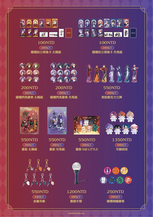 イベント期間中、にじさんじブースにてグッズを購入いただくと、お買い上げ税込600NTD(ニュー台湾ドル)ごとに「ランダムクリアブロマイド(全7種)」を1枚プレゼント!