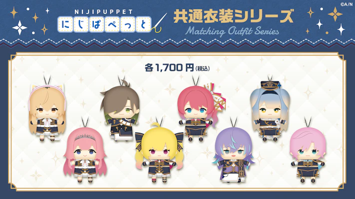 好評をいただいている「にじぱぺっと 共通衣装シリーズ」から新たに、家長むぎ、オリバー・エバンス、倉持めると、栞葉るり、周央サンゴ、鷹宮リオン、星導ショウ、夕陽リリの合計8名が登場!