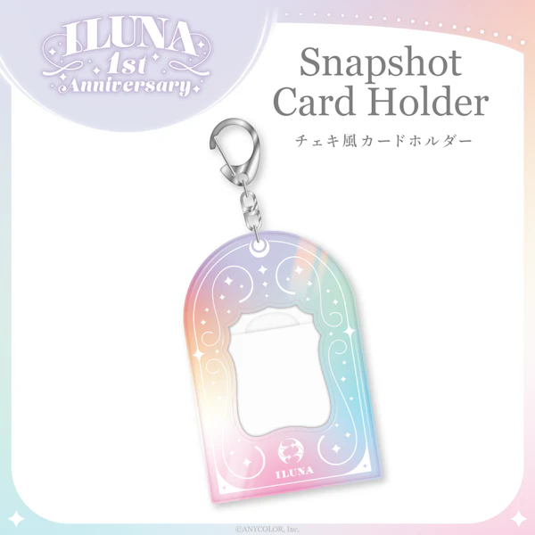 そして、『ILUNA』をモチーフにしたチェキ風カードホルダー、ライバーの手描きイラストを使用したラウンドグラス、ライバーカラーをあしらったバッグチャーム、受注販売のオリジナルマスコットシリーズ「にじぱぺっと」です。