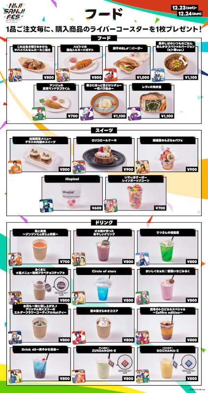 さらに、会場で販売されるオリジナルグッズ情報のほか、ライバー考案のオリジナルフードやドリンクメニューなどの追加情報も公開しました。開催まで期待が高まる「にじフェス2023」。是非ご注目ください!