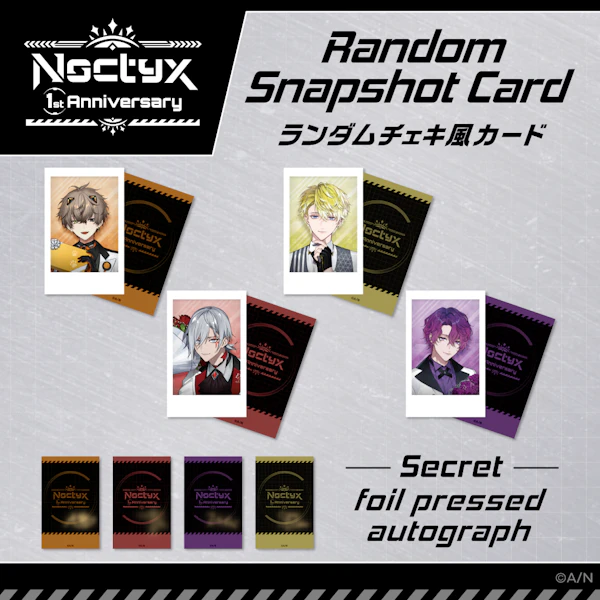 For every JPY 3,000 (tax included) spent on “Noctyx 1st Anniversary” in the NIJISANJI EN Official Store, a random “Perk Message Card” will be added as a perk!