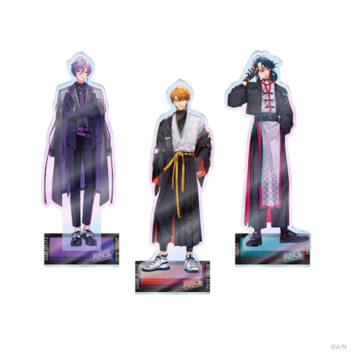 グッズラインナップは、ランダムフォト風カード、オーロラアクリルスタンド、にじぱぺっと、Tシャツ、ハンガー、証明写真風ブロマイド&スリーブセット、箔押しアクリルパネル、ランダム箔押し缶バッジ、刺繍おなまえキーホルダー。3SKMのメンバーそれぞれをモチーフとした、日本酒グラス&升セット(北見遊征)、喫茶グラス(魁星)、シャンパングラス(榊ネス)、の計12種類。