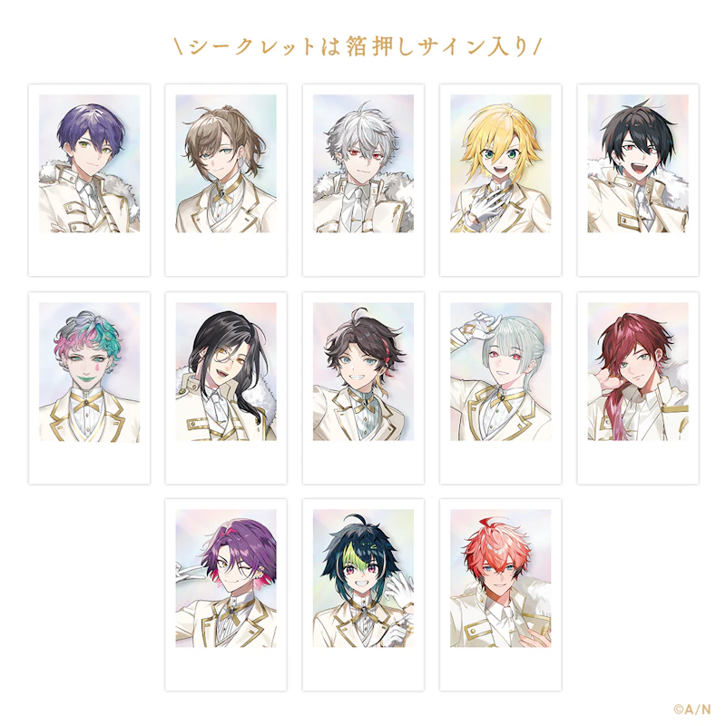 ・種類:全26種(剣持刀也、叶、葛葉、卯月コウ、ジョー・力一、夢追翔、三枝明那、シェリン・バーガンディ、弦月藤士郎、ローレン・イロアス、渡会雲雀、赤城ウェン、伊波ライ)