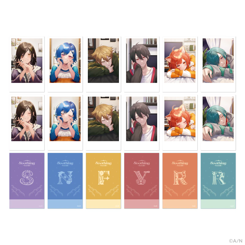 白雪巴、西園チグサ、伏見ガク、夢追翔、ラトナ・プティ、緑仙6名のライバーが参加する「にじさんじ Soothing Goods」のラインナップは、ランダムチェキ風カード、ダイカットアクリルパネル、クリアファイル、ペーパーフレグランス、クッション、にじぬいSleepの6種類。