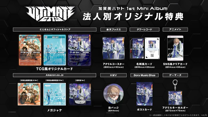 ANYCOLOR株式会社(本社:東京都港区 代表取締役:田角陸、以下「当社」)が運営するVTuber / バーチャルライバーグループ「にじさんじ」は、当社所属ライバー、加賀美ハヤトの1st Mini Album「ULTIMATE CITY」情報をお伝えいたします。